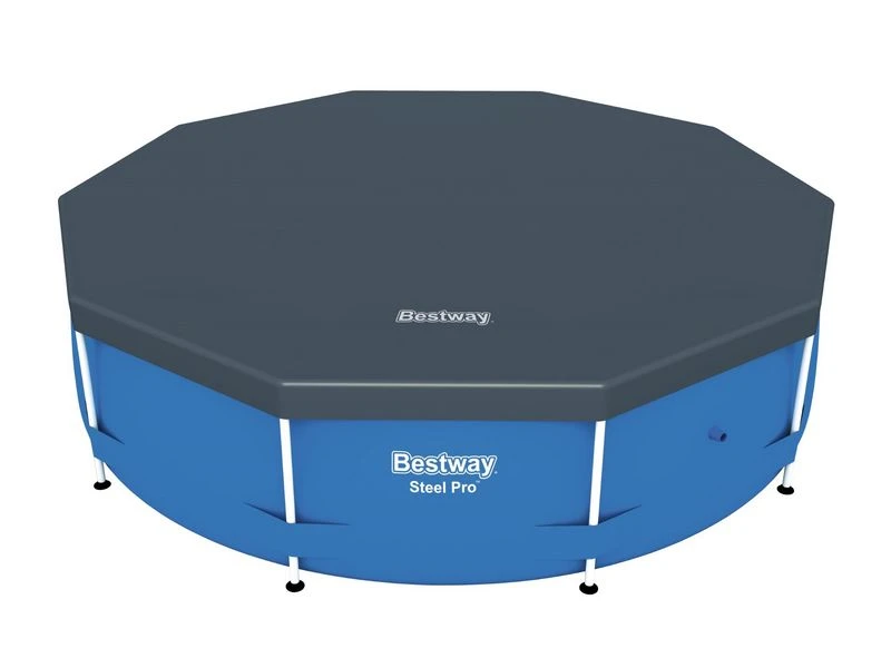 Afdekkleed voor zwembaden met een stalen frame. Dit kleed valt over het zwembad heen. Incl. koord om het vast te zetten en met afvoergaten om overtollig water te lozen. Afmeting: Ø 305 cm.