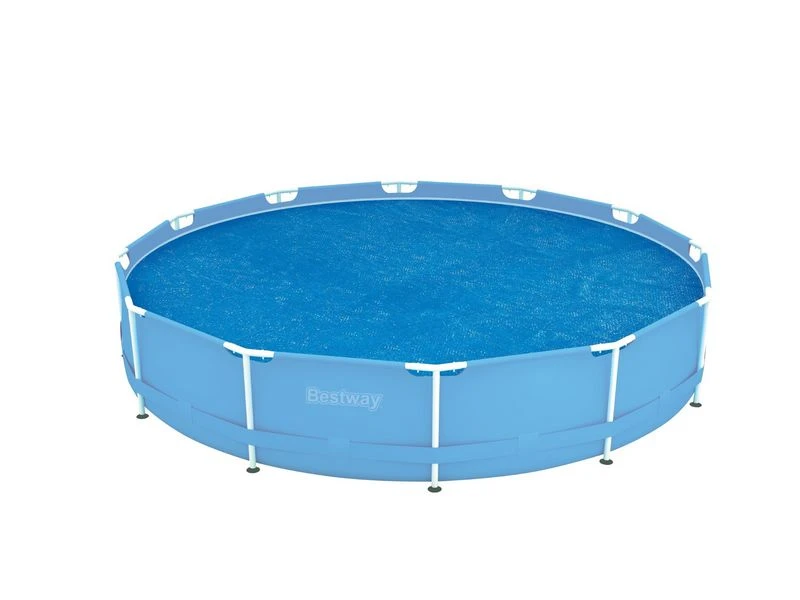 Zomerkleed voor ronde zwembaden met een stalen frame Ø 366 cm of zwembaden met opblaasrand van 366 0f 396 cm. Het kleed drijft op het water en dient iets kleiner te zijn dan de afmeting van het zwembad, om overtollig water af te voeren. Houdt de warmtvast en gaat vervuiling tegen. Afmeting: Ø 356 cm.