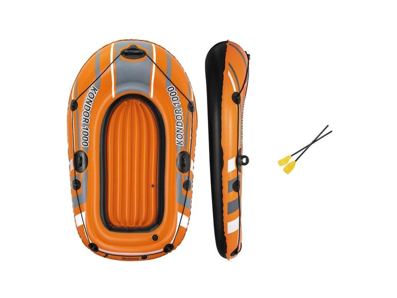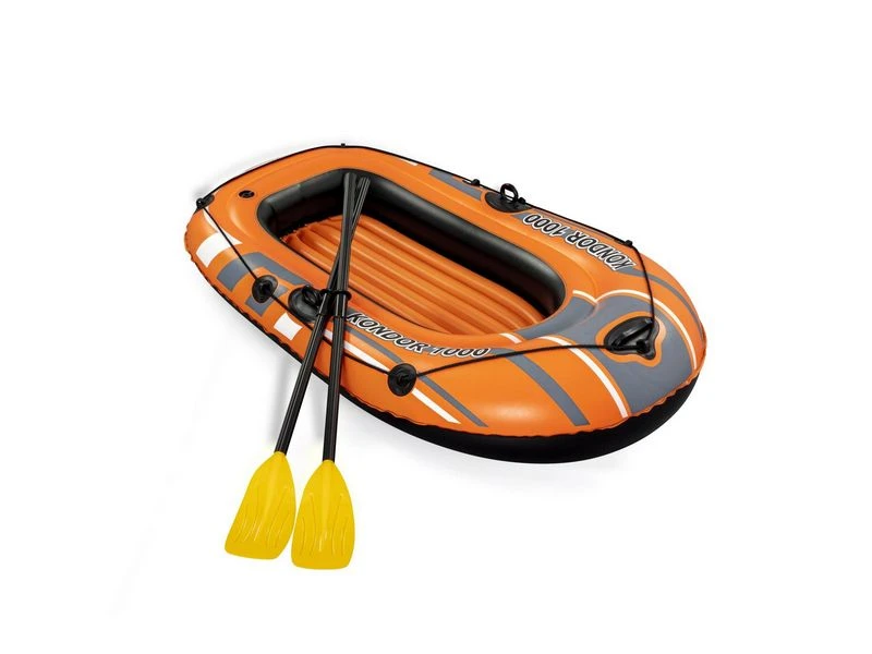 De Hydro-Force Raft Set type 61078 is een 1 persoons boot en wordt geleverd met peddels (62015). Met opblaasbare bodem voor meer comfort. Incl. grijpkoord rondom, een stevig handvat voor extra veiligheid en een sleepring. Verder is de boot voorzien van stevige dollen en klemmen om de riemen vast te zetten. Gemaakt van Vinyl 0,25 mm. Afmeting: 155x93x30 cm. Geschikte leeftijd is 6+.
