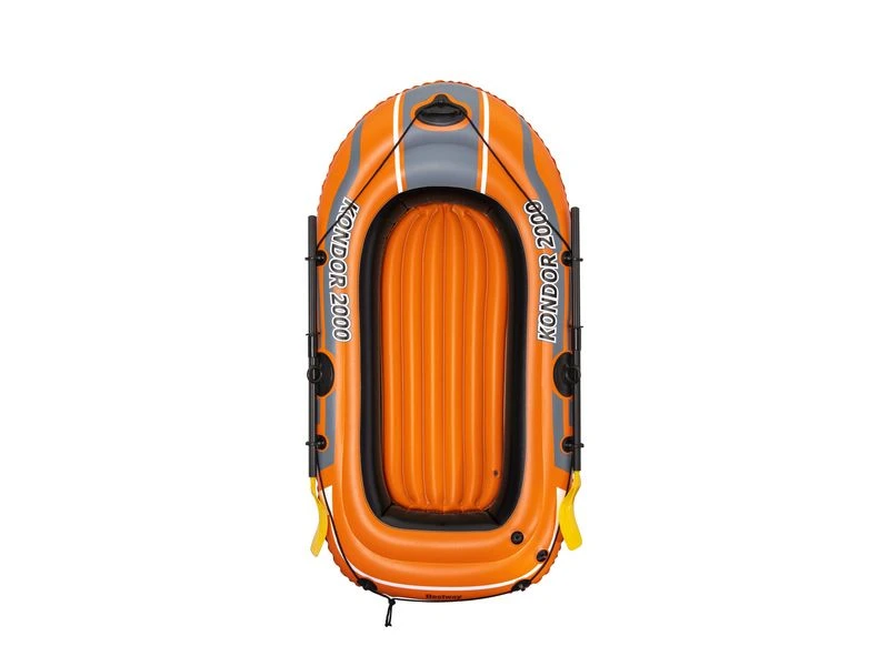 Boot met 3 luchtkamers voor 1 volwassene en 1 kind. Max. gewicht: 120 kg. Snel op te blazen. Rondom een koord, opblaasbare bodem voor extra comfort, sterke handgreep, vaste dollen, een sleepring met sleeplijn en een reparatiepatch. Incl. 1 paar riemen(124 cm) en een voetpomp (13 cm). Afmeting: 188x98x30 cm.