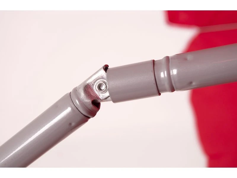 Een stijlvolle en stevige parasol met stalen frame. Het 160 gr/m² polyester doek biedt bescherming tegen schadelijke zonnestraling. De steel is voorzien van een knikarm zodat het doek richting de zon kan worden gebogen. De steel van de parasol heeft een diameter van 25 millimeter.