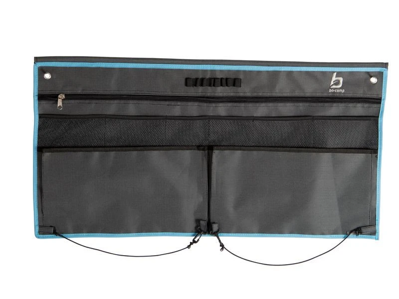 Een multifunctionele 10-vaks organizer. Door middel van een pees, klittenband of ophangogen is deze organizer eenvoudig te bevestigen. Ideaal voor in de camper, caravan of tent. Voorzien van 2 grote voorvakken, 6 mesh vakken en een ritsvak. Inclusief elastische lijntjes om een doekje of een rol papier aan op te hangen.