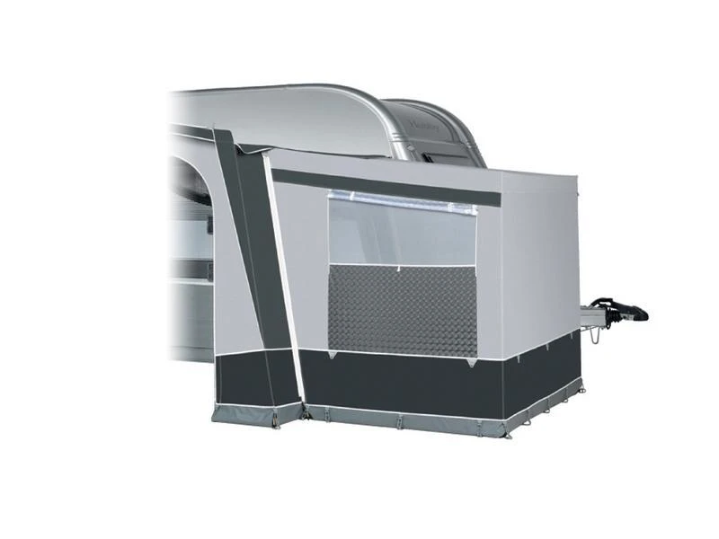 Zijwanden: beide panelen zijn neerrolbaar, uitritsbaar en voorzien van een deur