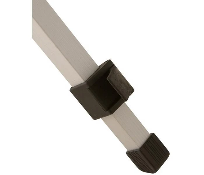 Het stevige aluminium frame is voorzien van een extra stabilisatie stand die zorgt voor extra stabiliteit. De poten zijn verstelbaar en de tafel wordt geleverd incl. draagtas.