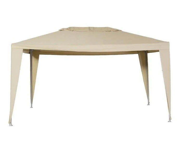 Let op: hoewel het paviljoen prima een buitje kan verdragen, is deze bedoeld als zonwering. Bij slecht weer en geen gebruik adviseren wij de tent droog op te bergen.