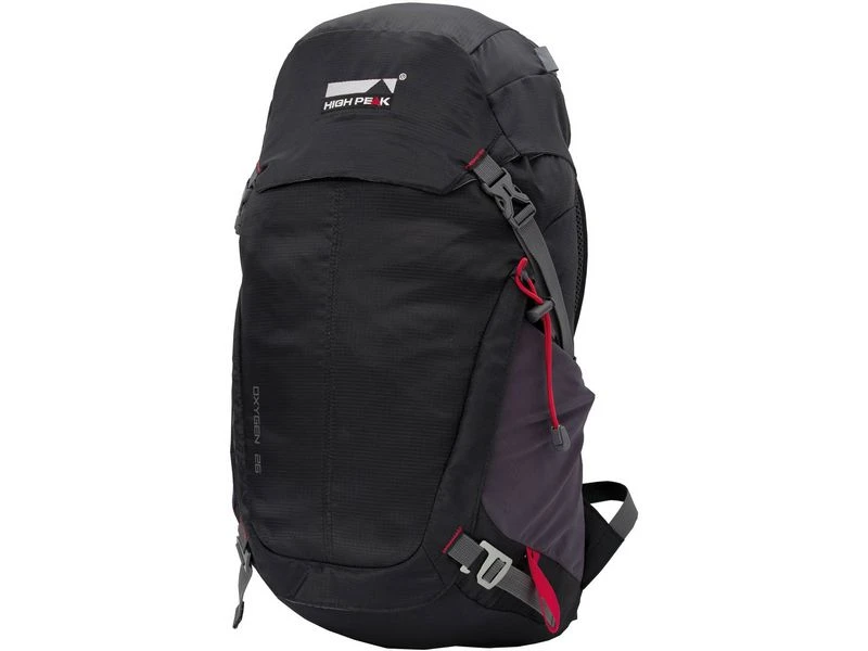 Met zijn 26 liter volume is de zwarte Oxygen 26 van High Peak geschikt voor dagtochten en excursies. De ergonomisch gevormde comfortrug met zijbouten zorgt voor een optimale ventilatie en drukverdeling. De opening aan de voorzijde maakt een snelle toegang tot het hele hoofdcompartiment mogelijk. Een hydratatiesysteem is ook inbegrepen. Trekkingstokken kunnen aan de buitenkant van de rugzak worden bevestigd. Als het weer onderweg verandert, is er een regenhoes beschikbaar.