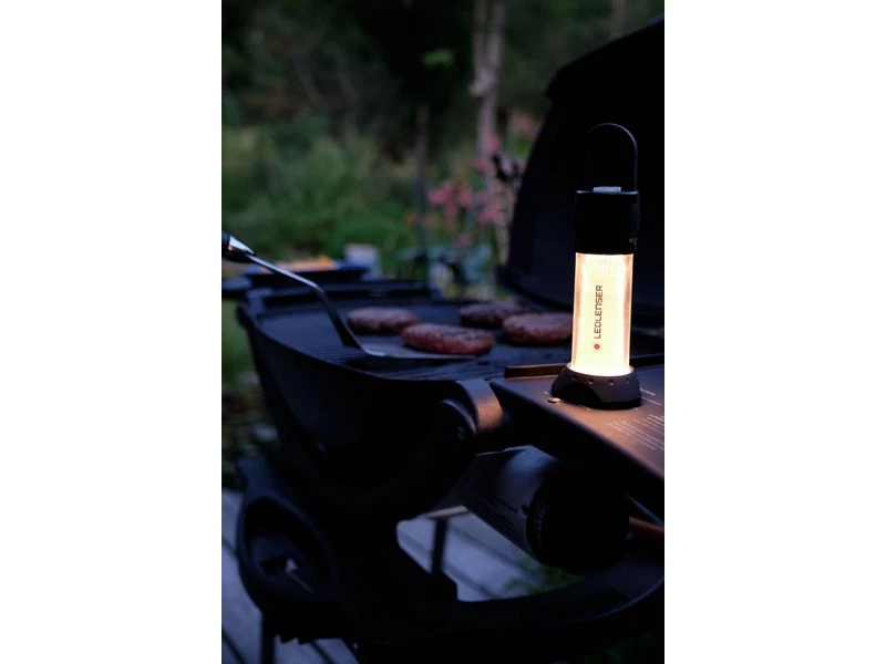 De efficiënte campinglantaarn met warmwit licht van Ledlenser zorgt dankzij de nieuwste lenstechnologie voor een niet-verblindende verlichting en een gezellige sfeer
