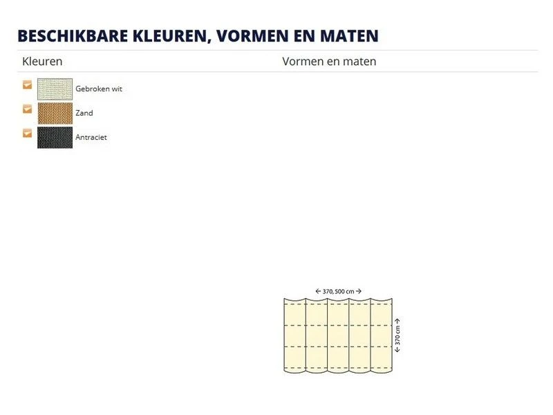 Het doek wordt compleet geleverd inclusief alle benodigde bevestigings-materialen. Deze zijn uiteraard van de hoogste kwaliteit RVS.