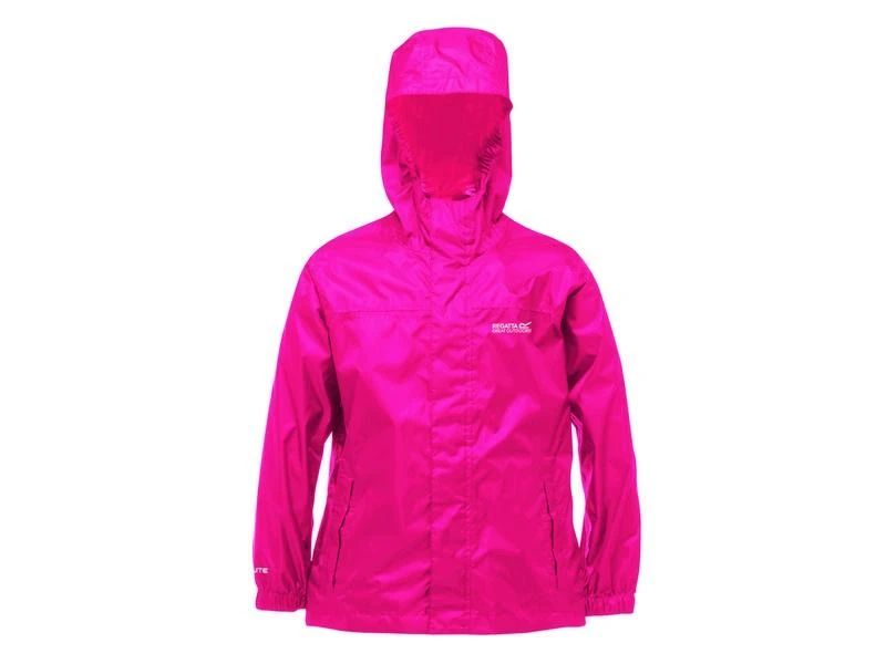 Jongens en meisjes regenjack. De naden van dit Regatta regenjack zijn getaped en het jack heeft een opgerolde capuchon in de kraag. Het jack is waterdicht en ademend.