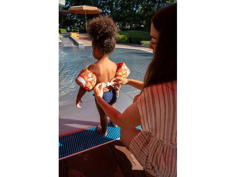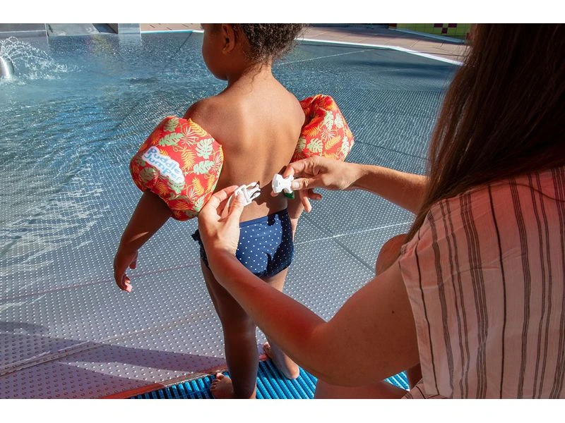 Onder het leuke ontwerp van Puddle Jumper’s ® ligt een solide constructie gemaakt van duurzame en veerkrachtige materialen. Het kind is snel en stressvrij voor ouders en kan binnen enkele seconden veilig worden vastgemaakt dankzij de enkele verstelbare gesp aan de achterkant – geen gedoe meer met een ongelukkig kind aan de waterkant.