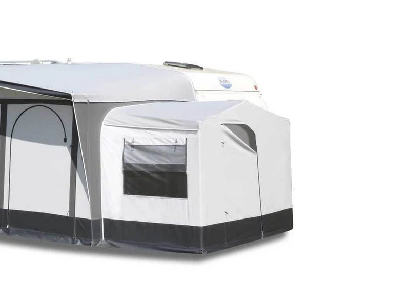Uitbouw kan uitsluitend aan de rechterzijde van de voortent worden geplaatst.