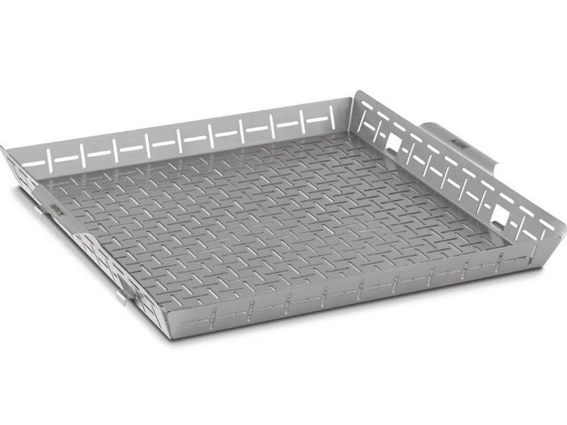Deze braadkorf met hoge wand is ideaal om o.a. vis en groenten in te bereiden. Het voorkomt dat groenten tussen de roosters valt en het patroon zorgt voor goede luchtcirculatie.